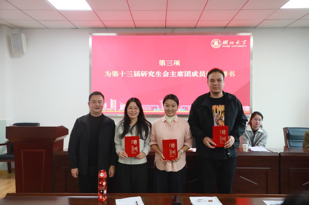 (通讯员 文/李紫茜 图/张怡 周雨漫)2025年10月22日,永利集团88304官网第十三届研究生会聘书颁发仪式暨第十四届研究生会首次见面会在学院410会议室举行。学院党委副书记周杰、辅导员杜晓雪出席会议,第十四届研究生会主席赵姝斐主持会议。