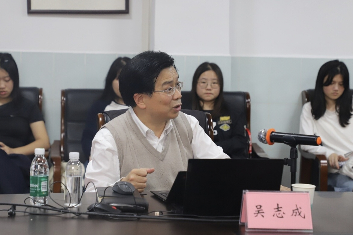 吴志成教授以“习近平外交思想”为主题,系统梳理了其形成脉络和发展历程。他指出,习近平外交思想是习近平新时代中国特色社会主义思想的重要组成部分,是以习近平同志为核心的党中央治国理政在外交领域的重大理论成果,为新时代中国对外工作提供了根本遵循和行动指南。他聚焦“十个坚持”的核心要义,深入阐释“一个根本保证”“两大历史使命”“三项基本原则”与“四条战略路径”,引导学生全面把握习近平外交思想的科学体系与精神实质。