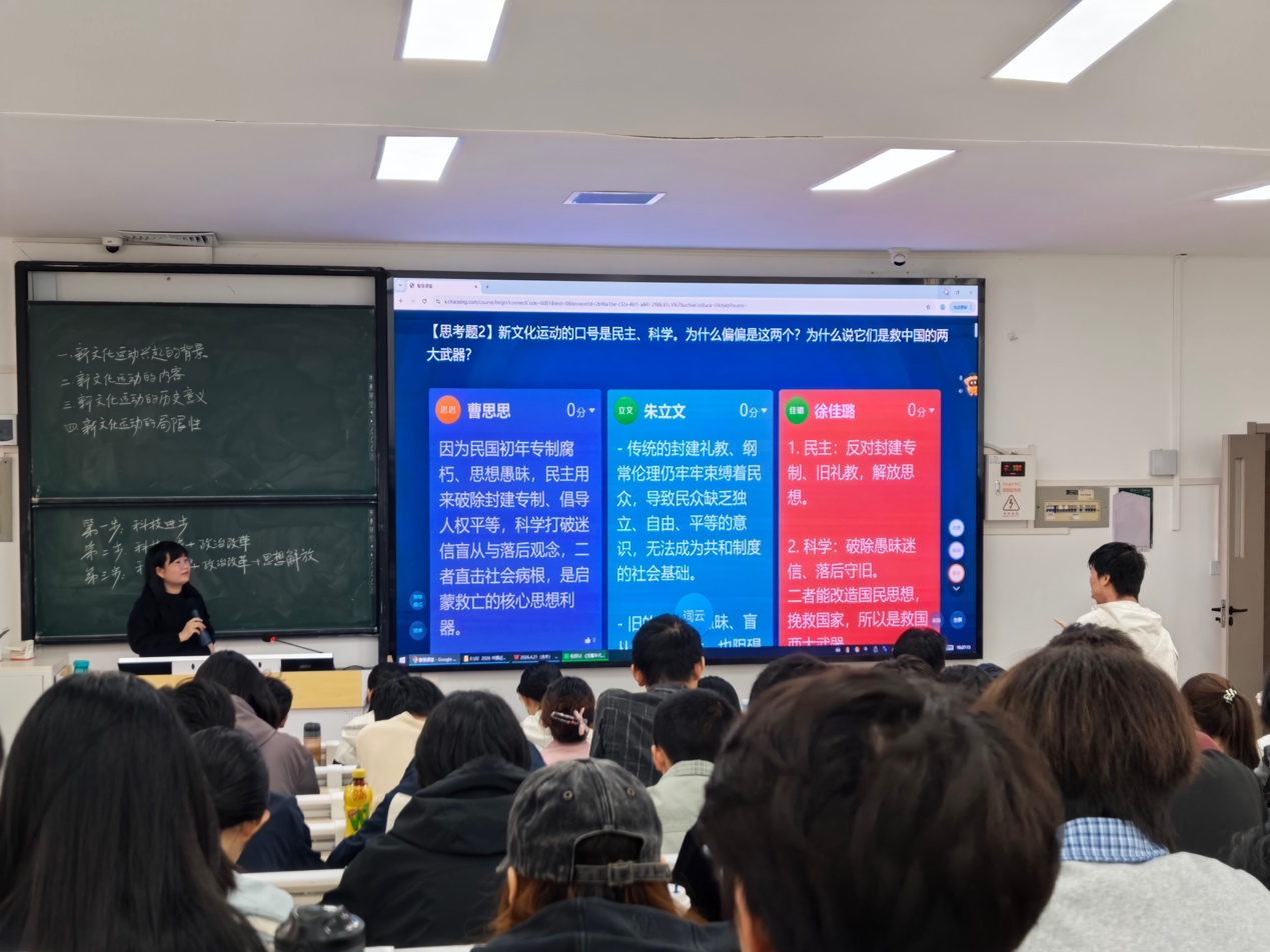 为进一步提升思想政治理论课的育人实效,深化教学内容与方法改革,探索思政课教学创新路径,4月20日至21日,永利集团88304官网组织开展了《中国近现代史纲要》听课评课暨集体备课活动。蒋英文、龚梦两位老师分别围绕“伟大建党精神”与“新文化运动”两项内容进行教学展示,学院党委书记李中伟及多位老师参加活动。