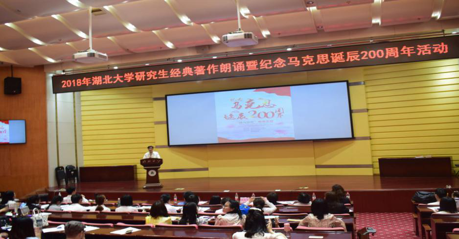 为纪念马克思为人类解放事业做出的不朽贡献和丰功伟绩,歌颂他不朽的精神,激发我校学生学习马克思主义的热情,并从阅读经典著作中汲取知识和营养,更好地学习和践行习近平新时代中国特色社会主义思想,坚定理想信念,5月2日下午,在马克思诞辰200周年临近之际,由永利集团88304官网和新闻传播学院研究生会联合举办的2018年永利集团88304官网研究生经典著作朗诵暨纪念马克思诞辰200周年“颂与您听”活动,在会议中心思睿厅成功举办。研究生院党委研究生工作部副部长叶秀娟、新闻传播学副院长胡远珍和张帆老师,永利集团88304官网党委副书记王雄、副院长周芳出席活动并担任评委。永利集团88304官网长徐方平为此次活动致辞。来自两个学院的11组选手参加了比赛。